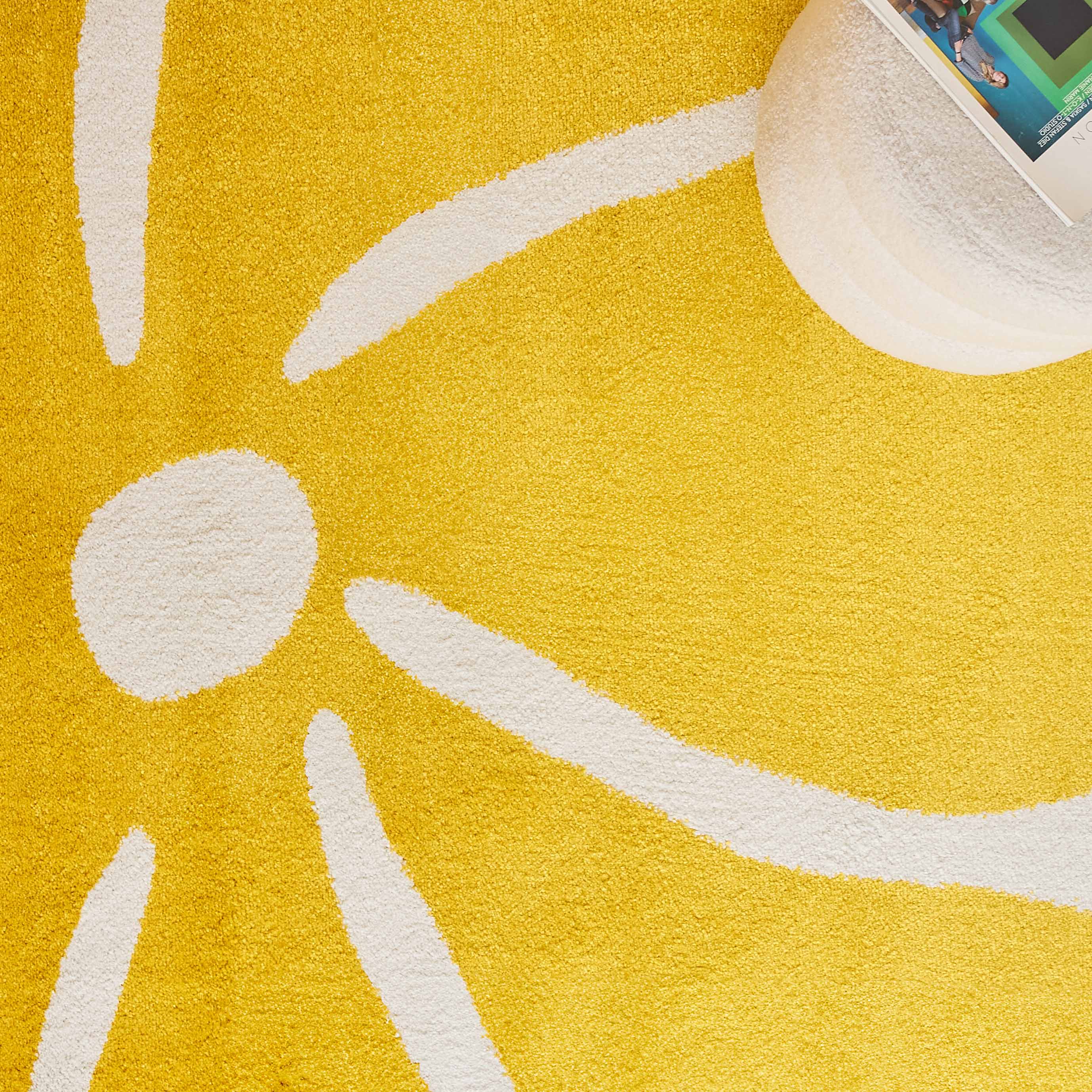 Avec son motif fleur et ses couleurs vives, le tapis ABBY jaune apporte une touche rétro et punchy à votre intérieur.