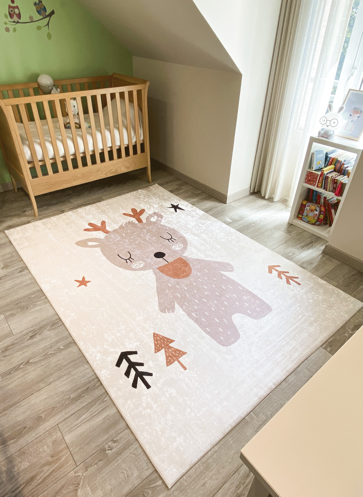 Tapis NOE marron motif renne. Dimensions : 80 x 150 cm