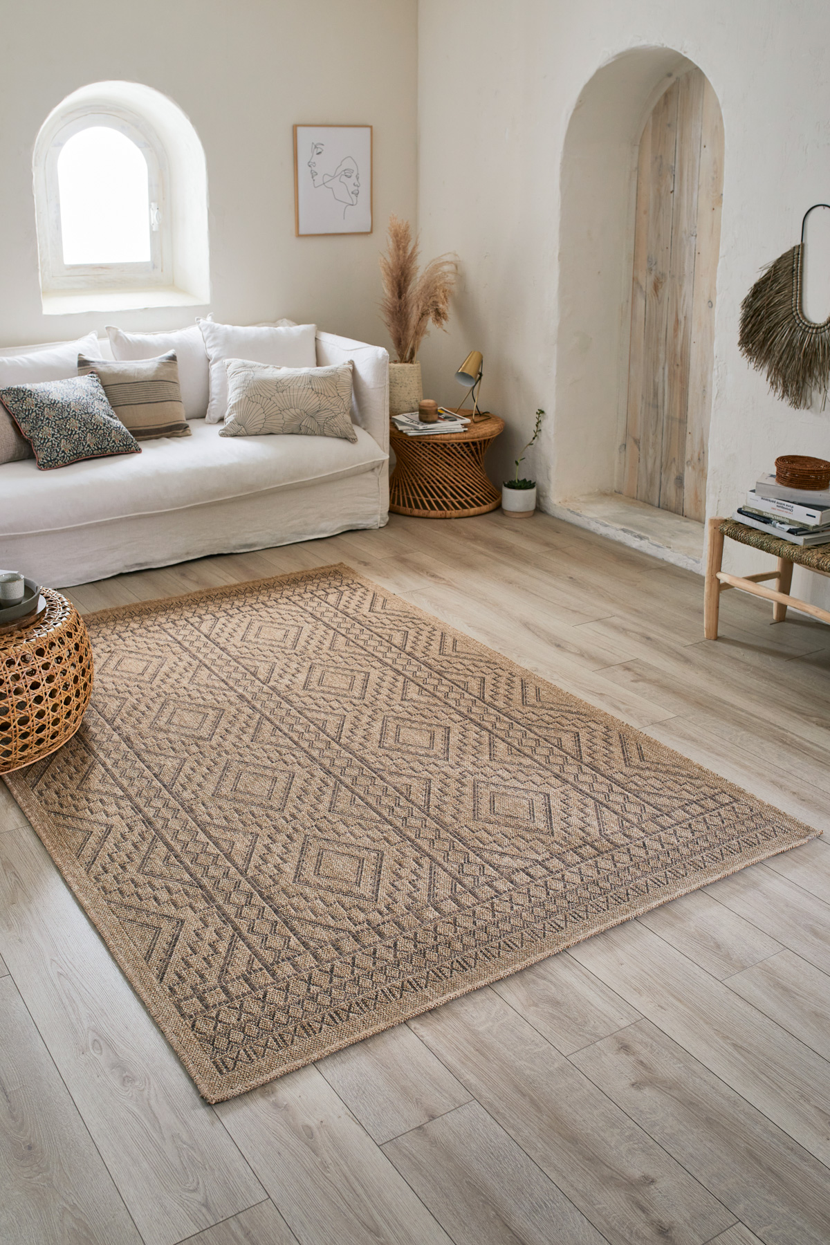 Tapis d'extérieur (ou d'intérieur) CAPRI marron aspect jute - Dimensions : 200x290 cm - BEAU RIVAGE®