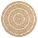 Tapis d'extérieur (ou d'intérieur) MENORCA rond marron et blanc aspect jute - Dimensions : 160x160 cm - BEAU RIVAGE®