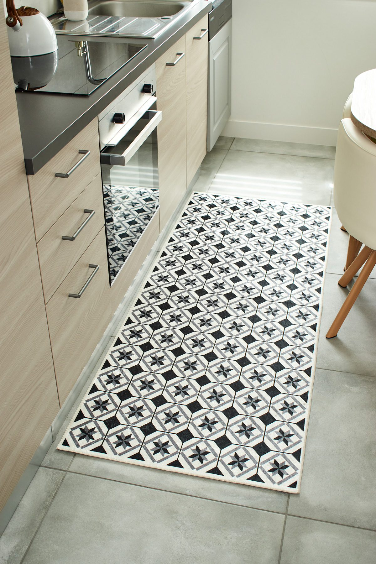 Tapis de cuisine YARA noir motif carreaux de ciment 70x180cm