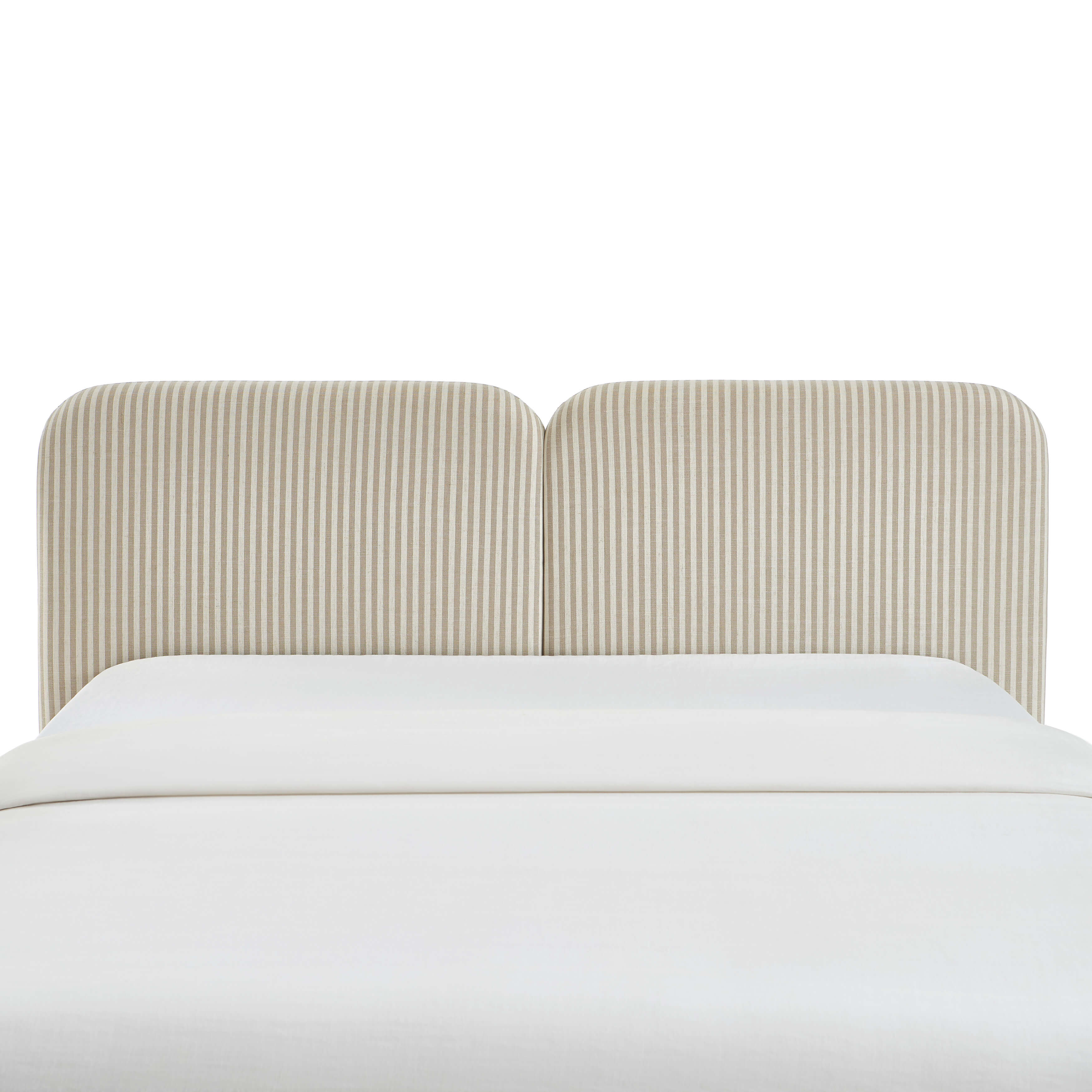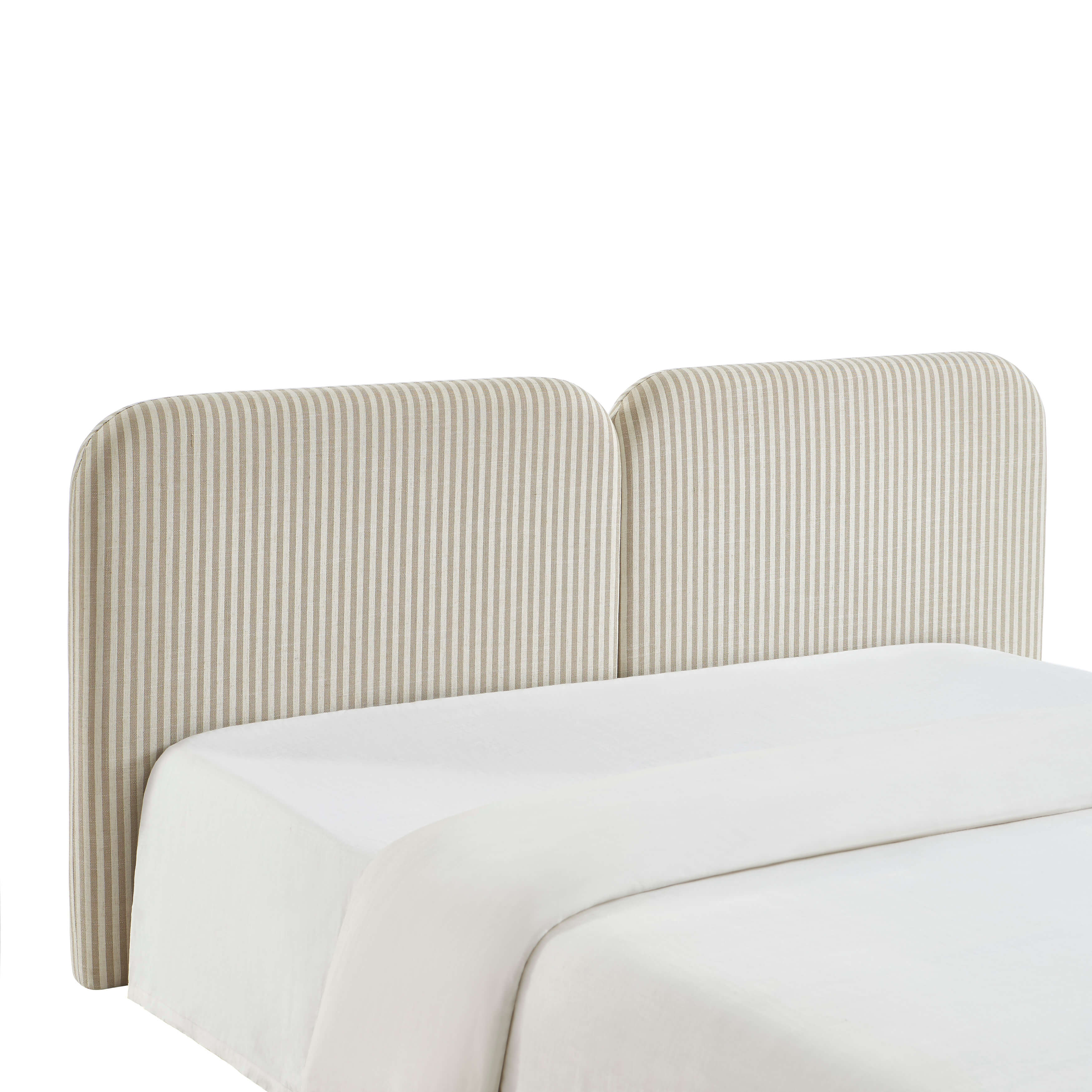 Tête de lit LOUISON tissu lin rayé blanc et beige 160cm