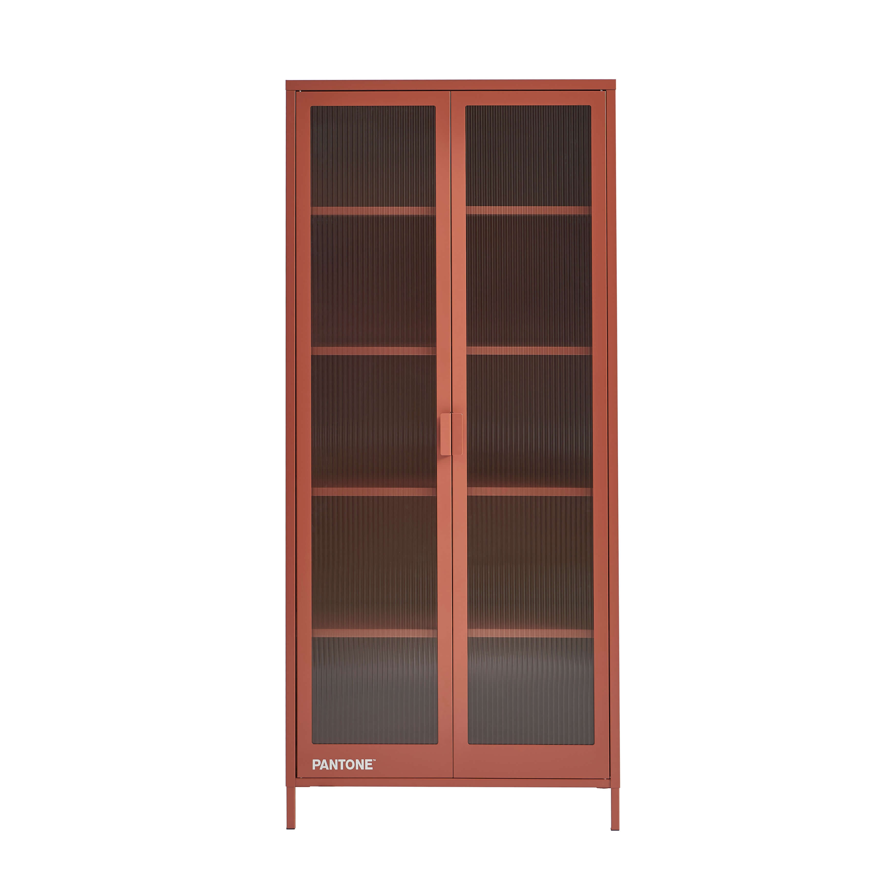 Le vaisselier PANTONE allie métal coloré et verre cannelé, idéal pour offrir un rangement élégant et moderne.