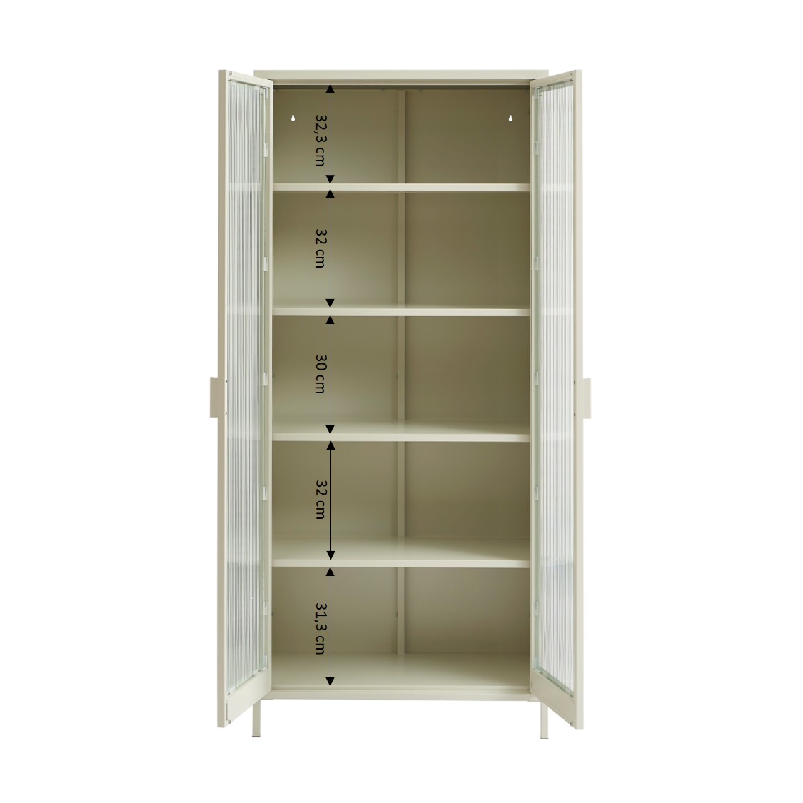 Vaisselier PANTONE en verre cannelé et métal beige sable h180cm