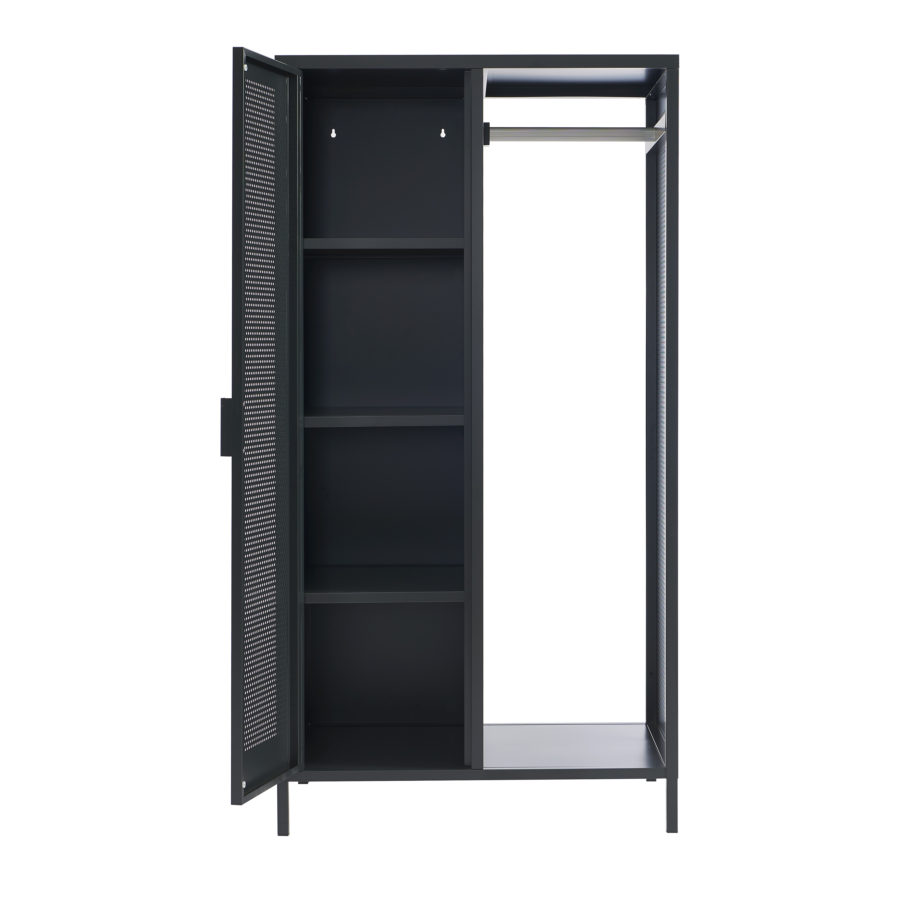- Design fonctionnel : 1 penderie ouverte + 3 étagères fermées